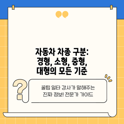 자동차는 크게 경형, 소형, 중형, 대형으로 구분할 수 있습니다. 이 구분은 차량의 크기, 배기량, 탑승 인원과 같은 여러 기준에 의해 결정됩니다. 이러한 기준을 통해 우리들은 자동차의 면허, 보험료, 세금 등 다양한 요소를 고려할 수 있습니다.