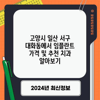 고양시 일산 서구 대화동에서 임플란트 가격 및 추천 치과 알아보기