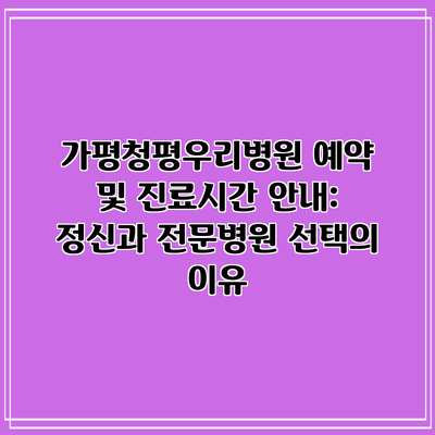 가평청평우리병원은 정신 건강에 대한 다양한 서비스를 제공하는 전문병원으로, 많은 환자들에게 신뢰받고 있는 곳이에요. 이 병원을 선택하는 이유와 그 예약 방법, 진료시간을 함께 알아보도록 할게요. ✅ 저렴한 항공권을 찾는 팁을 지금 바로 알아보세요. 👉 항공권 저렴하게 구매하기 예약 방법 어플리케이션 사용하기 가장 편리한 방법으로 가평청평우리병원 어플리케이션을 통한 예약이 있어요. 안드로이드와 iOS 모두에서 사용할 수 있고 구글 … Read more
